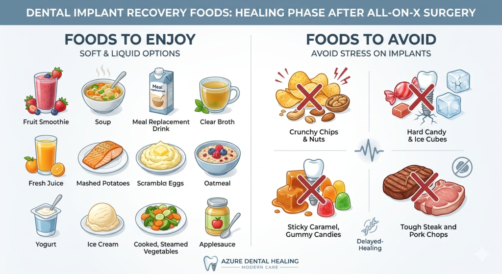 | Tough meats | Require extra chewing and force upon your healing implants, causing stress and delaying healing. |