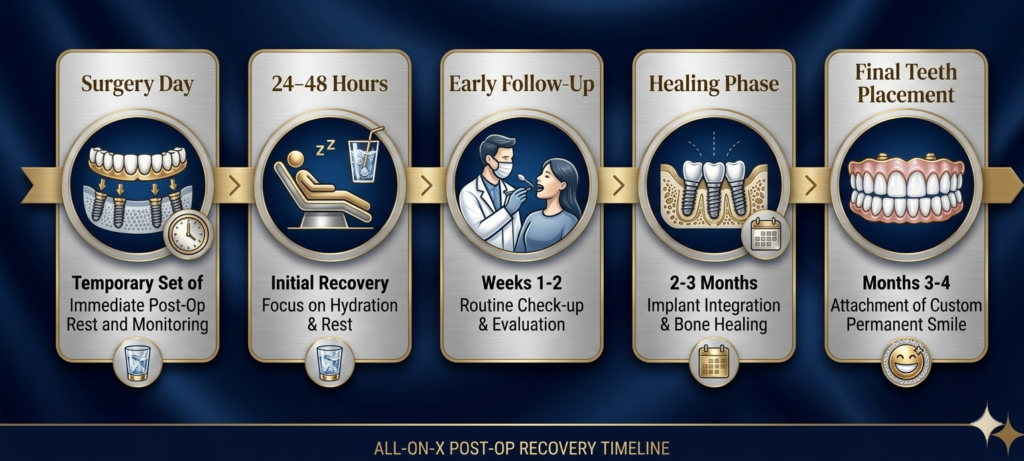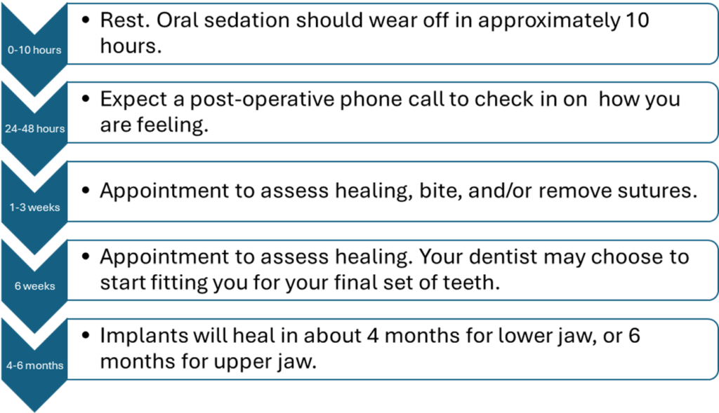 After surgery, you will receive temporary teeth while your permanent teeth are being made. It is essential to take proper care of these temporary teeth to prevent complications and ensure a smooth healing process.