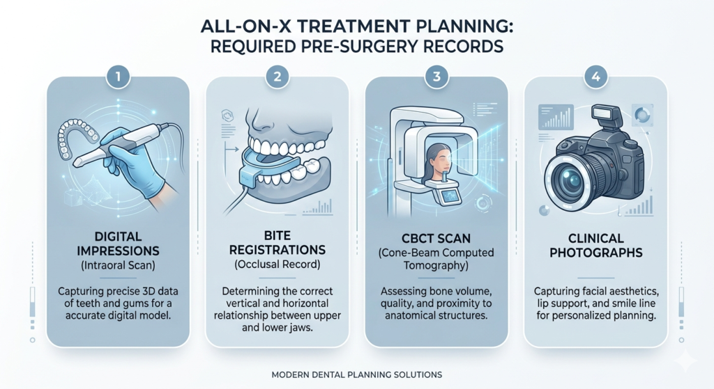 You will complete your examination and records. To achieve highly accurate, personalized surgery, detailed dental records are captured to plan the placement of implants, teeth, and the smile.